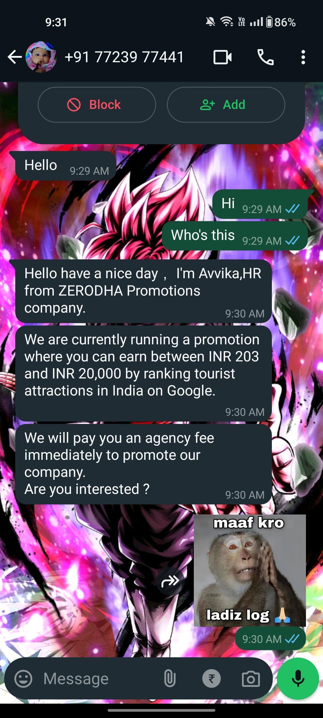 Zerodha Scam message 🔥 😂 Durr rahe aise logo se - Seedha Block karna . #StaySafe #Invest