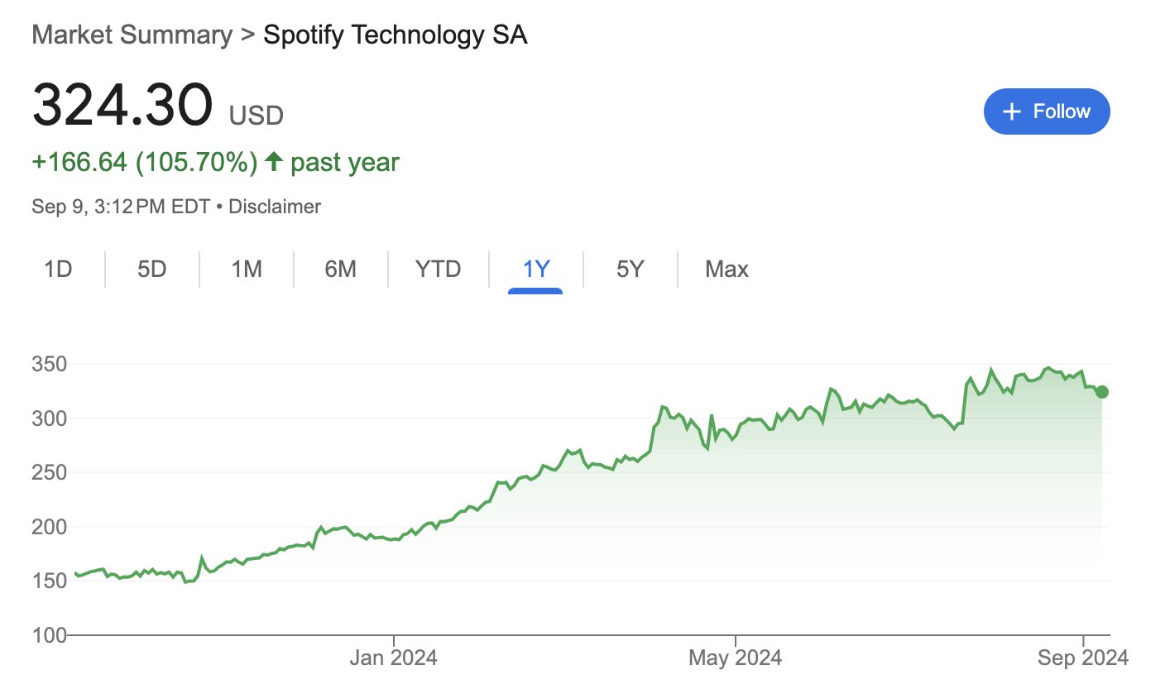 Spotify is up over 100% in the past year Here's their pitch deck: