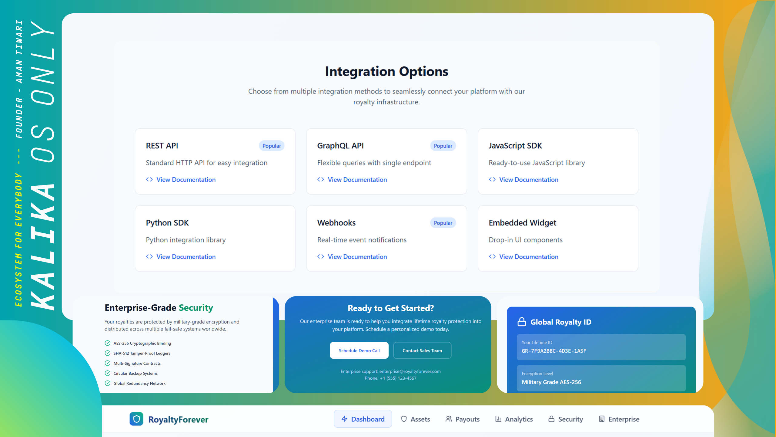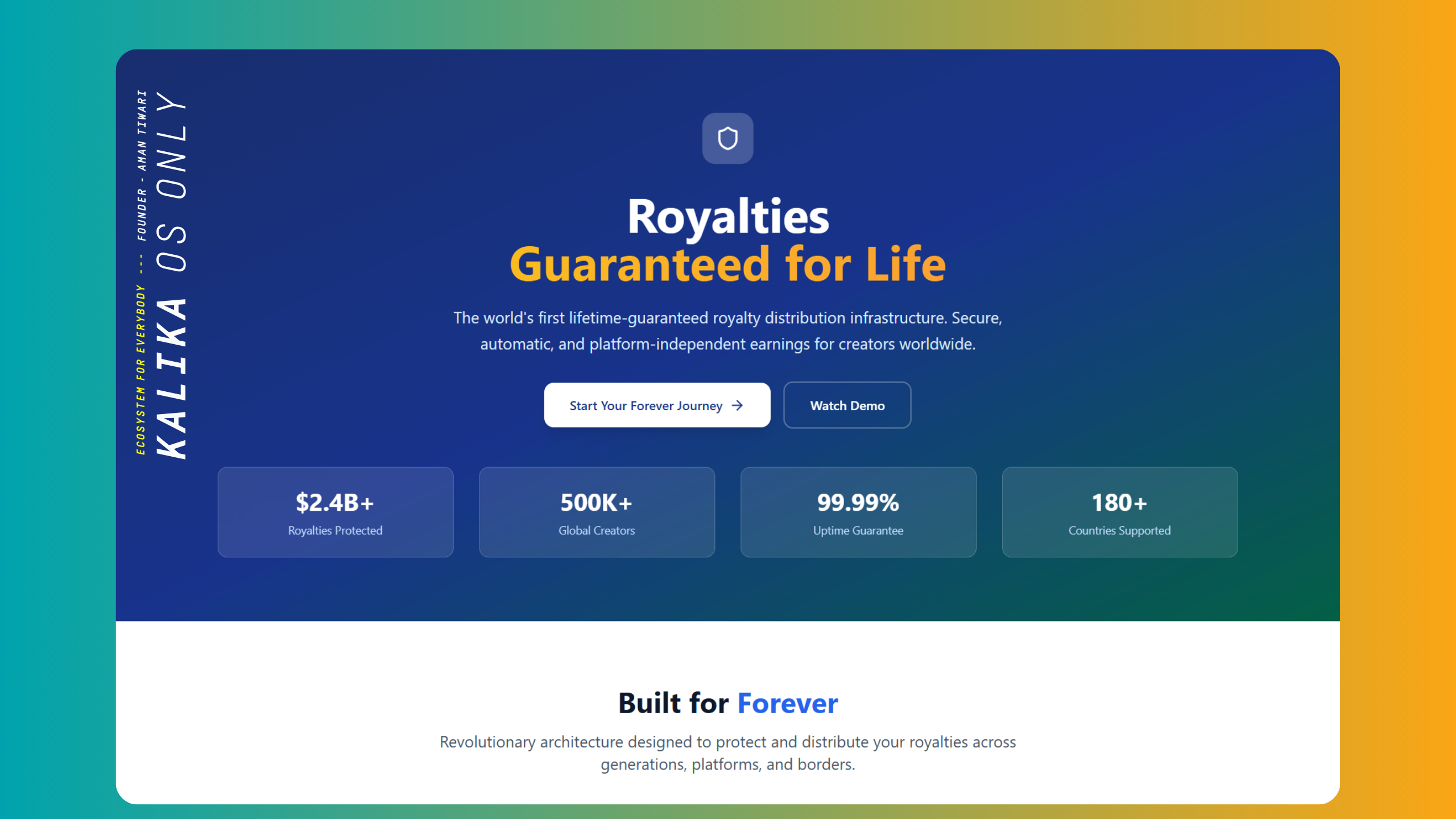 Introducing the future of creative freedom ๐ A lifetime-guaranteed royalty distribution infrastructure that empowers creators to earn automatically, securely & transparently ๐ No middlemen. No platform lock-in. Exclusively on Kalika OS...where i