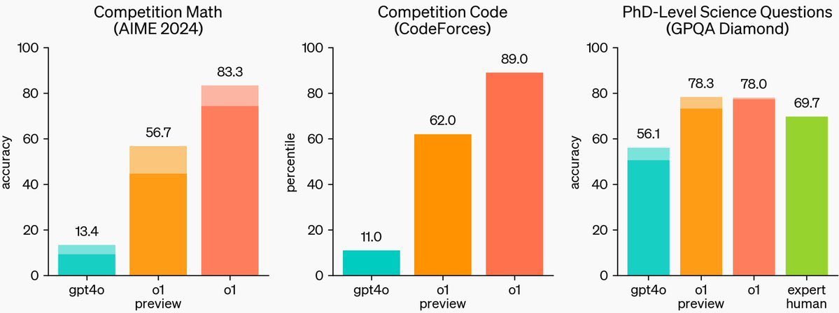 This is OpenAI's new model (o1 Aka strawberry) and it is surpassing almost every other model.