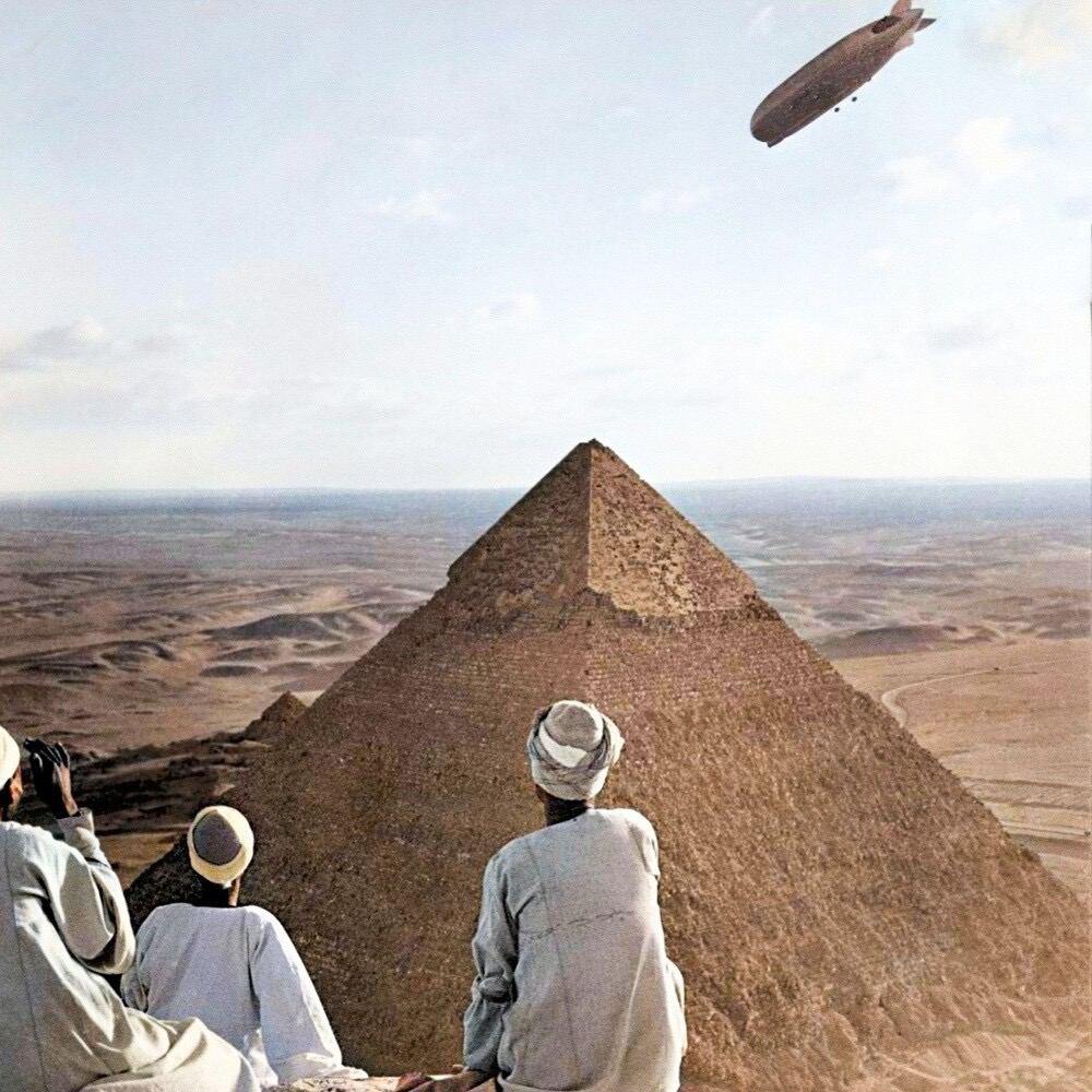“Graf Zeppelin” flying over the pyramids of Giza, Egypt, 1931.