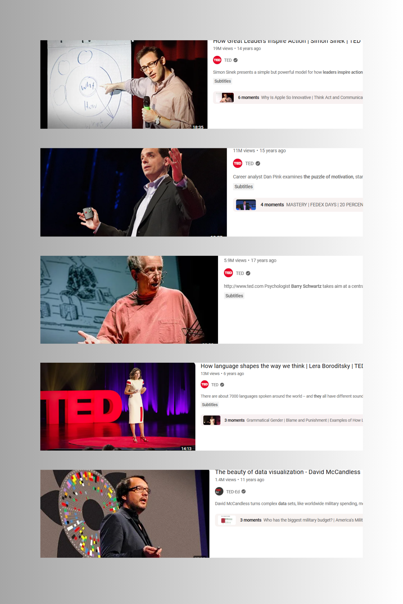 Here are 5 Ted Talks that will make you smarter and help you grow in life. 1 - How Great Leaders Inspire Action by Simon Sinek - Sinek explores the concept of the Golden Circle and explains why some leaders and organizations inspire action when othe