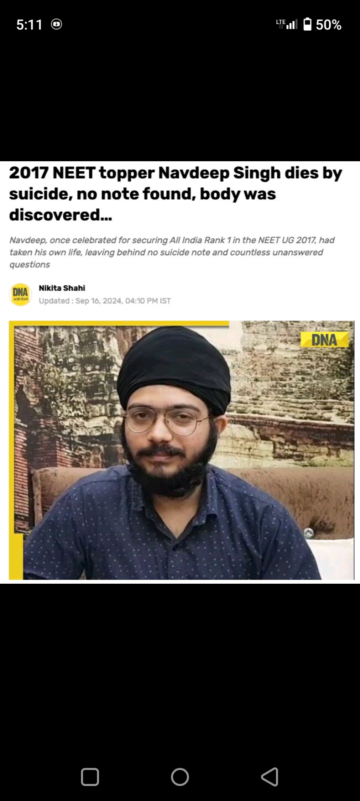 The heartbreaking suicide of Dr. Navdeep Singh forces us to confront a harsh truth about our medical system. How did a profession designed to save lives become one that pushes its own into despair? Dr. Singh wasn’t just a medical student—he was the top ranker in NEET UG 2017, a beacon of academic excellence. Pursuing an MD in Radiology at MAMC, one of India’s best, his journey was a testament to relentless hard work, resilience, and sacrifice. Yet, despite his incredible achievements, we failed him. Why is there no regular mental health support for healthcare professionals? Why do we not have a robust grievance system to address their struggles? And where is the dedicated helpline for their well-being? India is already facing a severe shortage of specialist doctors—we can’t afford to lose more, especially to something preventable. The lack of mental health support for our healthcare workers isn’t just a personal tragedy. It’s a systemic failure. And it’s one that we’ve collectively ignored for far too long.