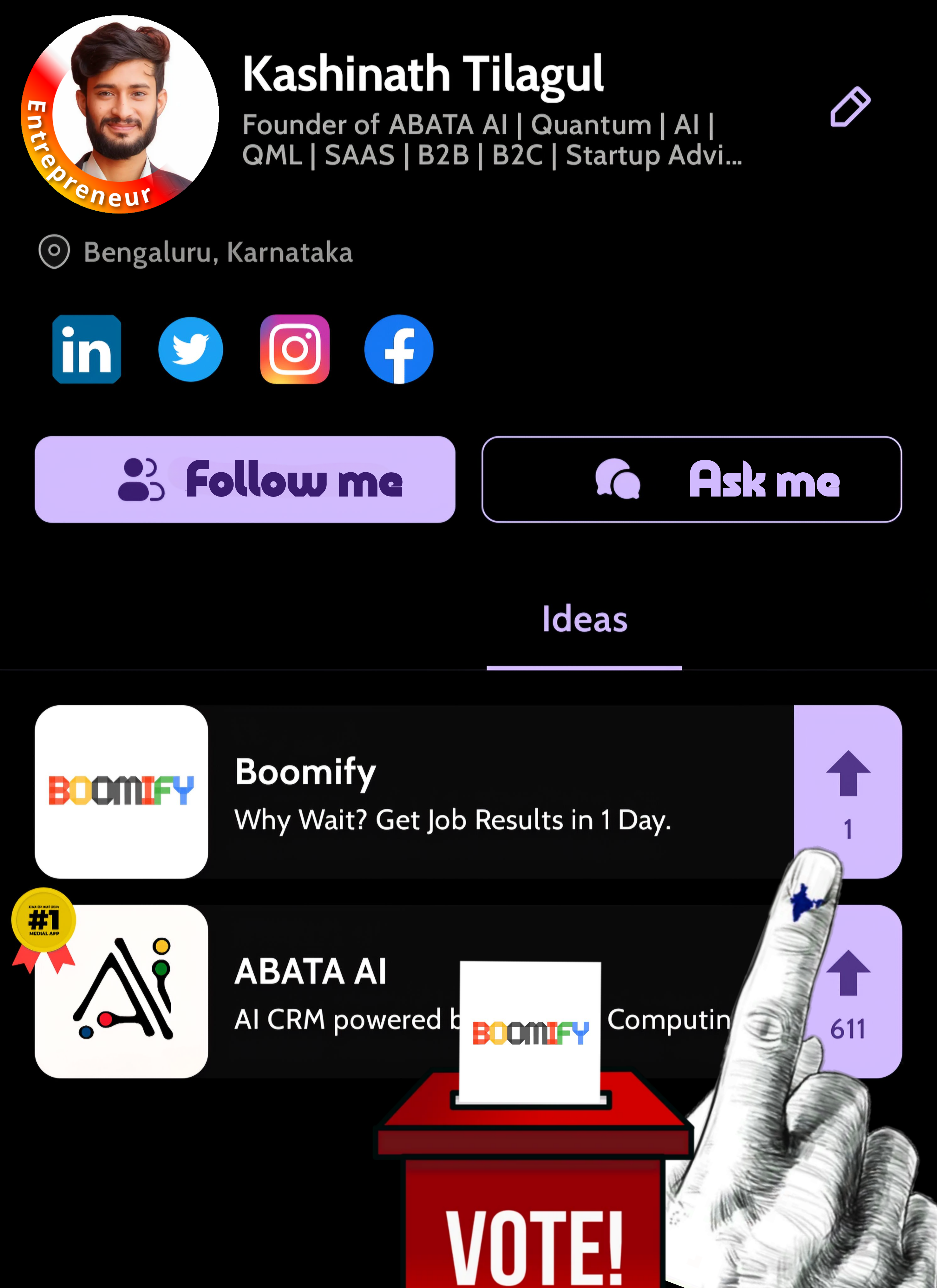 Forget Zeptoโs 10-minute delivery and Zomatoโs 30-minute delivery โ Boomify delivers your job application status in just 24 hours! Boomify is competing in the Red Bull Basement 2024 through the Medial Startup Showcase, and we need your support! #W