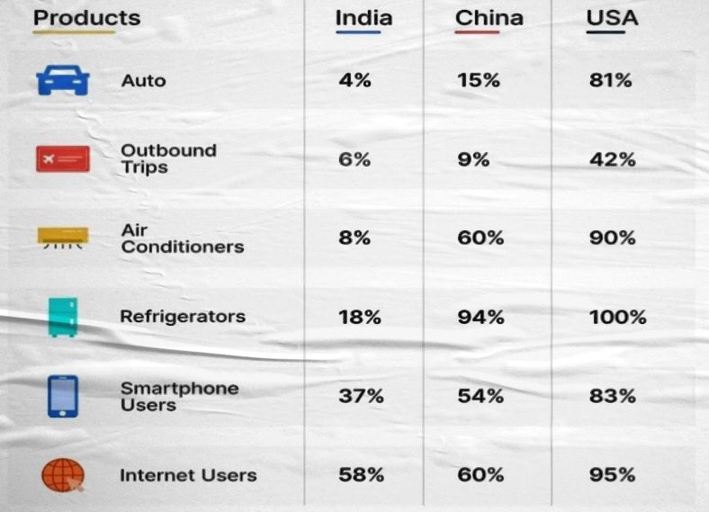 India: The world's largest untapped consumer base with just 4% auto ownership and 18% refrigerators, the opportunity for explosive growth is knocking and they say we have reached the entire India.