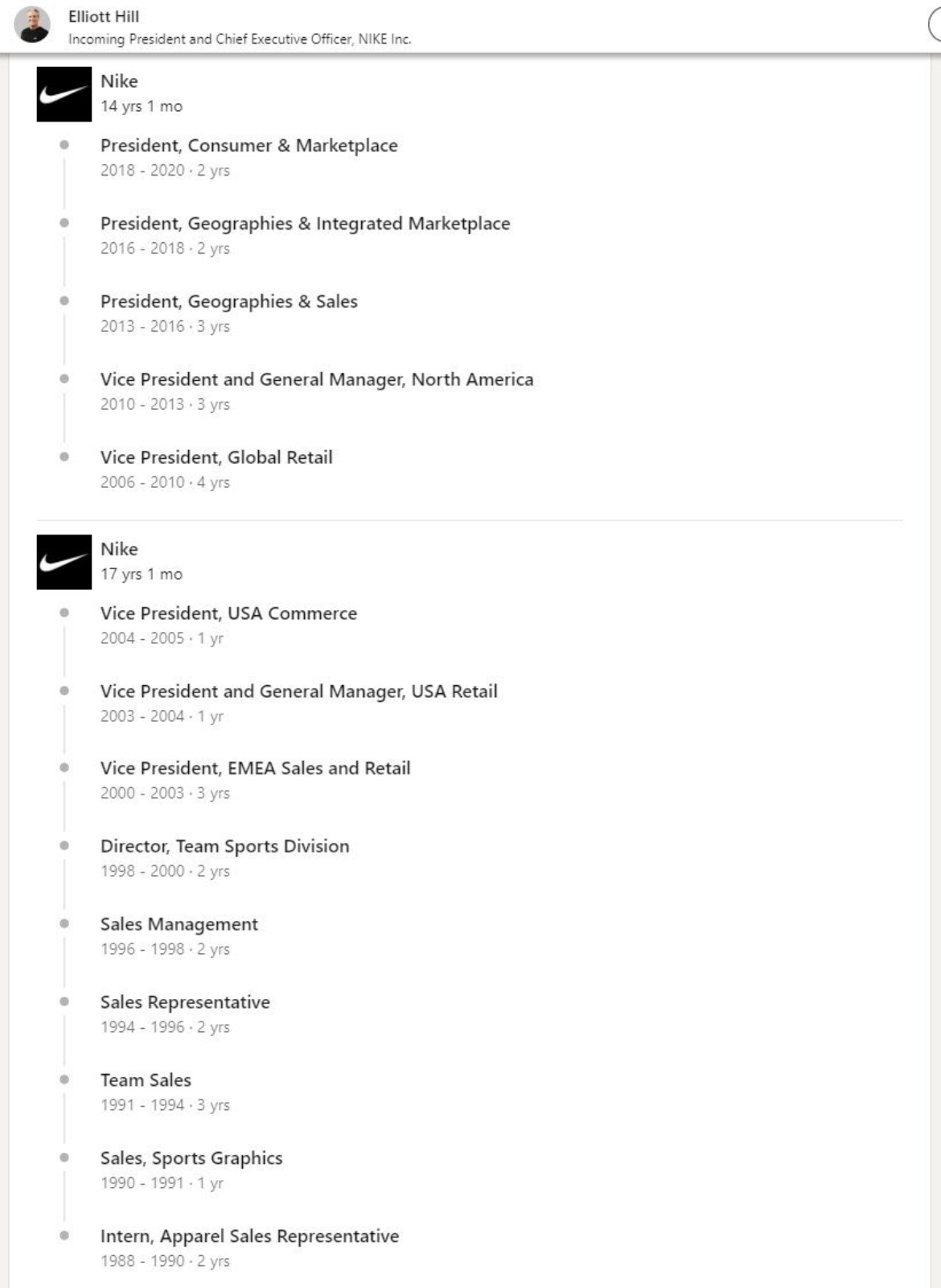Nikeโs new CEO may have the best LinkedIn profile ever โ 32 years with the same company, from intern to CEO!