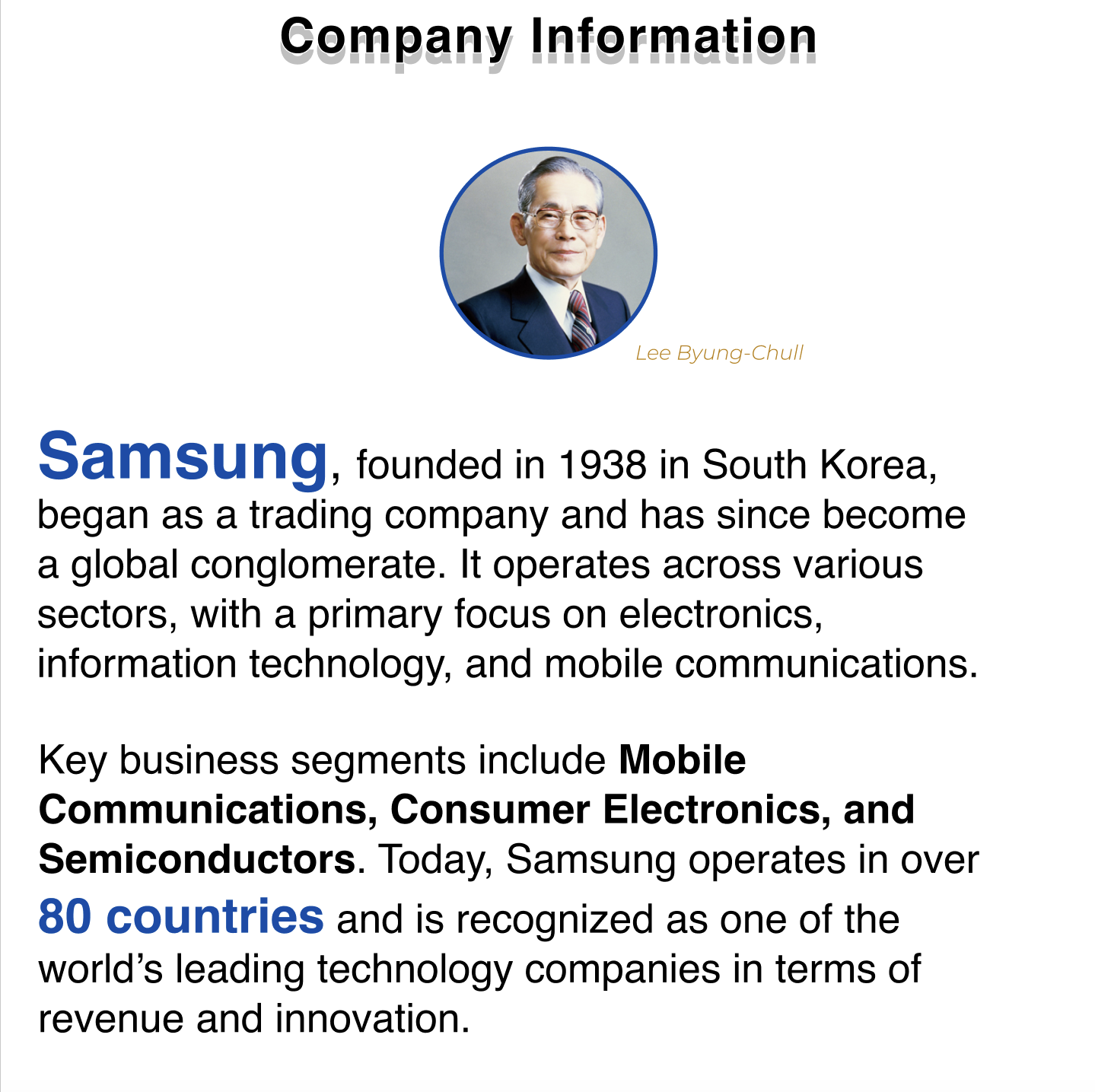 From humble beginnings to global innovation . Samsung's journey from a trading company in 1938 to a tech giant continues to shape the future of electronics, shipbuilding, and more