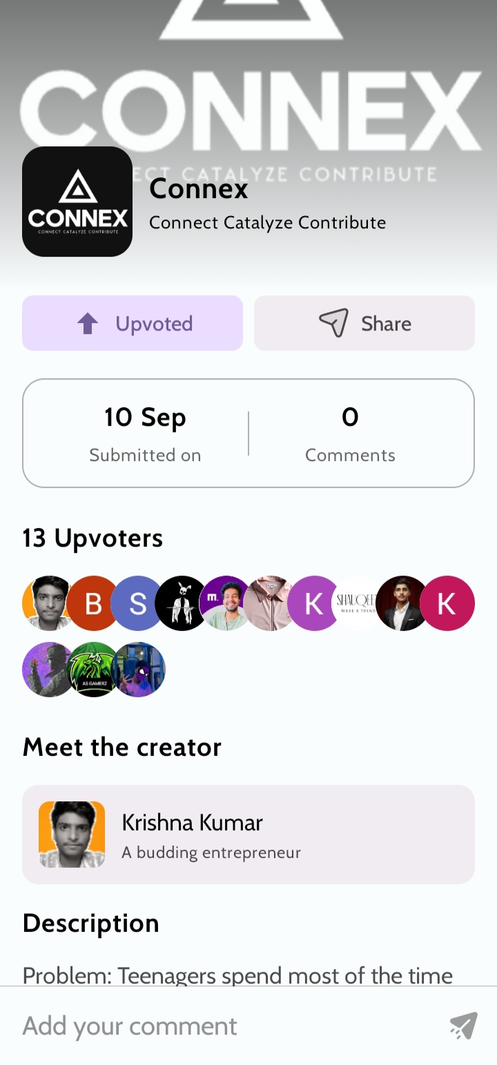 Hey! My name is Krishna Kumar and here's my idea "Connex" for Red Bull Basement 2024 through Medial’s Startup Showcase. Share your thoughts and do upvote me. https://medial.app/idea/connex-9017761e22f09 #Redbull #Entrepreneurship #StartUp #MedialEn