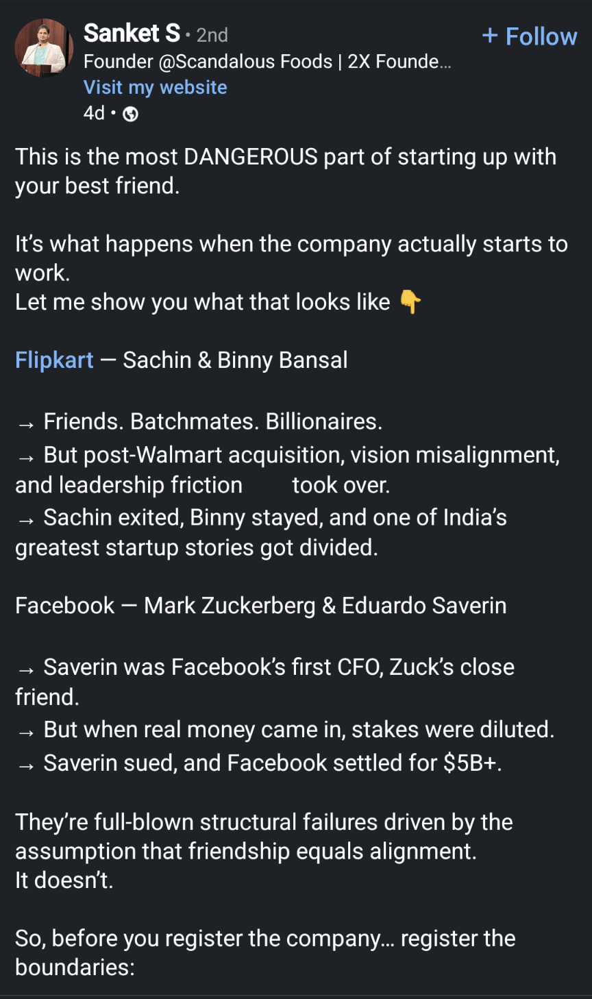 LinkedIn or Clickbaiting? I came across someone calling out friendship as "the biggest risk" in starting up! well, "the" biggest? The "MOST DANGEROUS" seriously? I would like to call out and differ on this while everyone else might think of it as