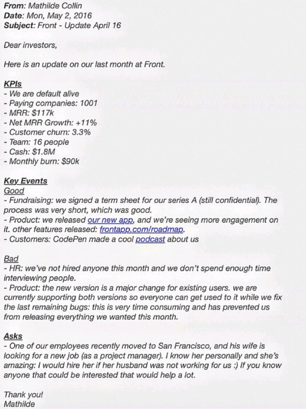 Struggling to raise money for your startup? Do this: 1 Write a monthly / bi-weekly update with all the progress you are making on the business. 2 When someone passes on the company, ask them if they would like to be put on your updates. 3 Send ev