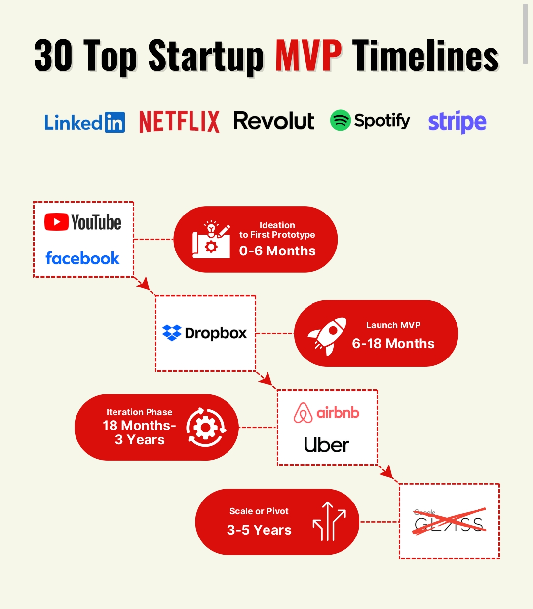MVP Timeline of top 30 Startups 🔥 Link in Comment for full list 🔗