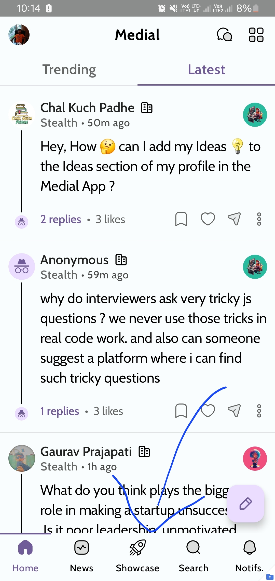 You will have to post them under this section. So that's actually Medial Startup Showcase where you get to present your idea and one the most voted one would get grant of upto ₹30k.. This is organised every month and the submission deadline in 20th. This month's showcase is over, the next one will start probobly tomorrow.