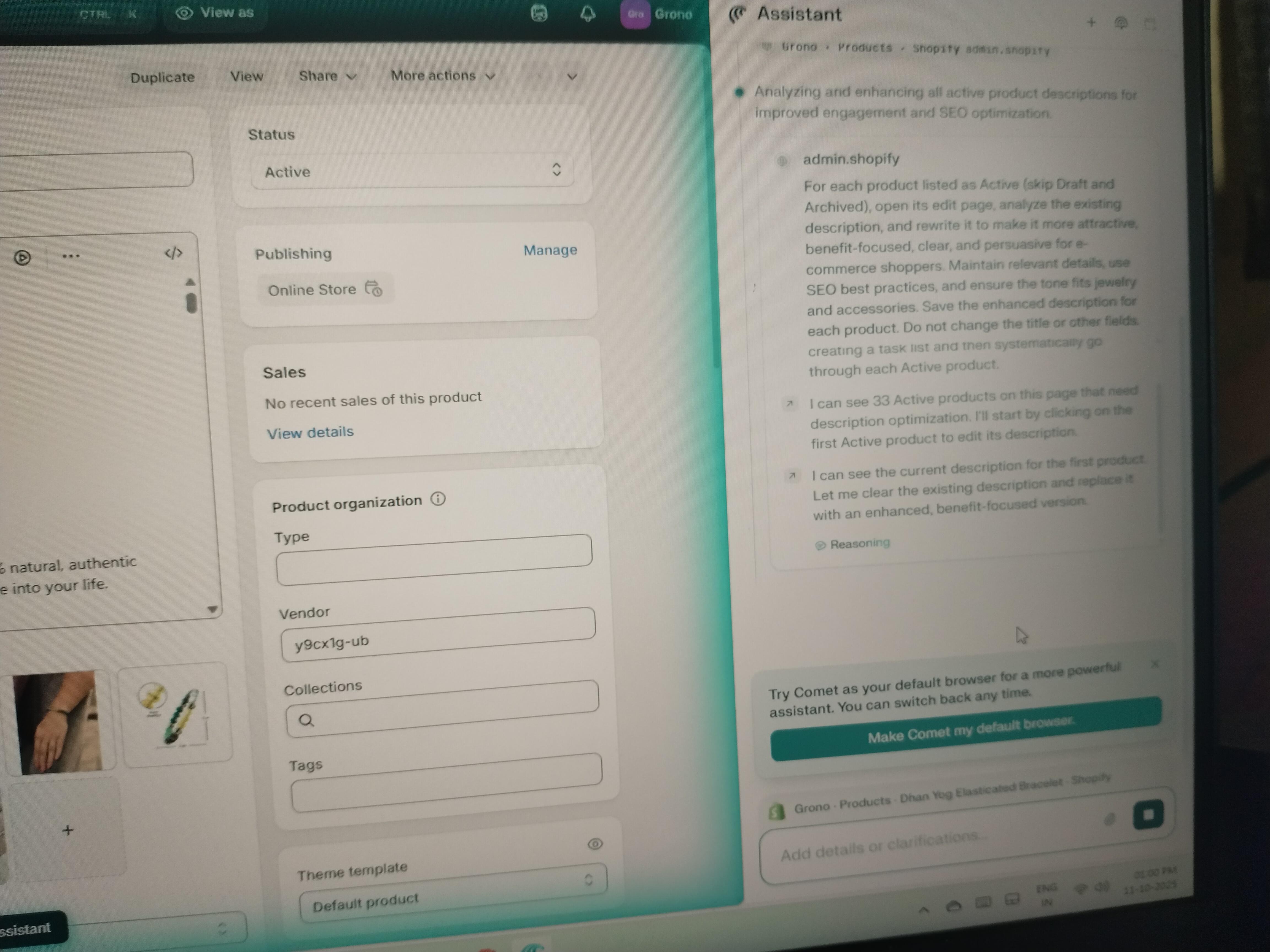๐ Comet is awesome, guys! I added 33 products to my Shopify store but honestly, I was too lazy to edit all the product descriptions manually ๐ So I decided to reinstall Comet (which I had uninstalled earlier thinking it wouldnโt be useful). Then