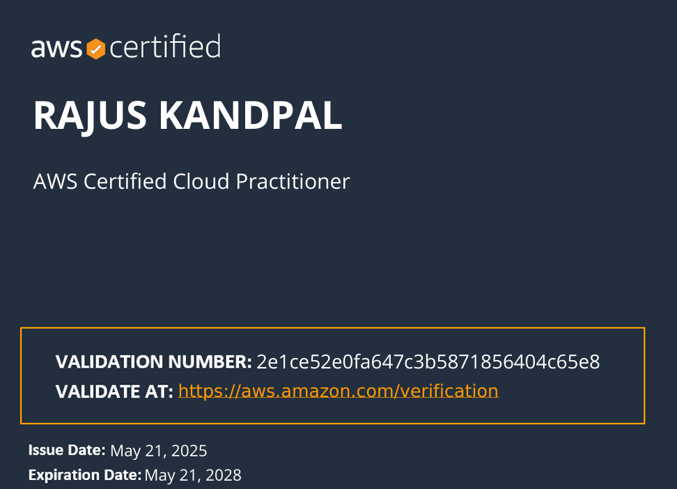 I’m thrilled to share that I have officially passed the AWS Certified Cloud Practitioner exam! ✅ This certification marks an important milestone in my cloud journey, strengthening my foundational understanding of AWS services, cloud architecture, se
