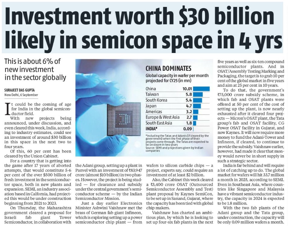 Did you know in 1980s India was way ahead and producing 800nm chips already in a Fab when China, Taiwan, or Korea had none? The Semi Conductor Laboratory was a PSU setup by then PM Indra Gandhi to make India self sufficient in computer chips. It started with 5 micron CMOS transistors and progressed rapidly. Then a fire somehow burned the whole fab down in the late 80s. Later USSR collapsed, Rajiv Gandhi was assassinated, and India was run over by vested interests of various foreign powers aimed at entering and exploiting its markets. The Semi Conductor dream of India was never revived until PM Modi's Semi Conductor push now in 2020s. We have to learn from the past. For similar foreign adversaries operate and they wouldn't like India becoming self reliant in semi conductors anytime. For now, all good as India is a small player and is not producing high end chips. But it can change in a decade as India innovates and leap frogs. Whoever the Govt then, need to ensure 1980s doesn't repeat again. Most of India's development issues is not because of local politics but geopolitics and India's flawed foreign policy since Independence is my strong opinion.