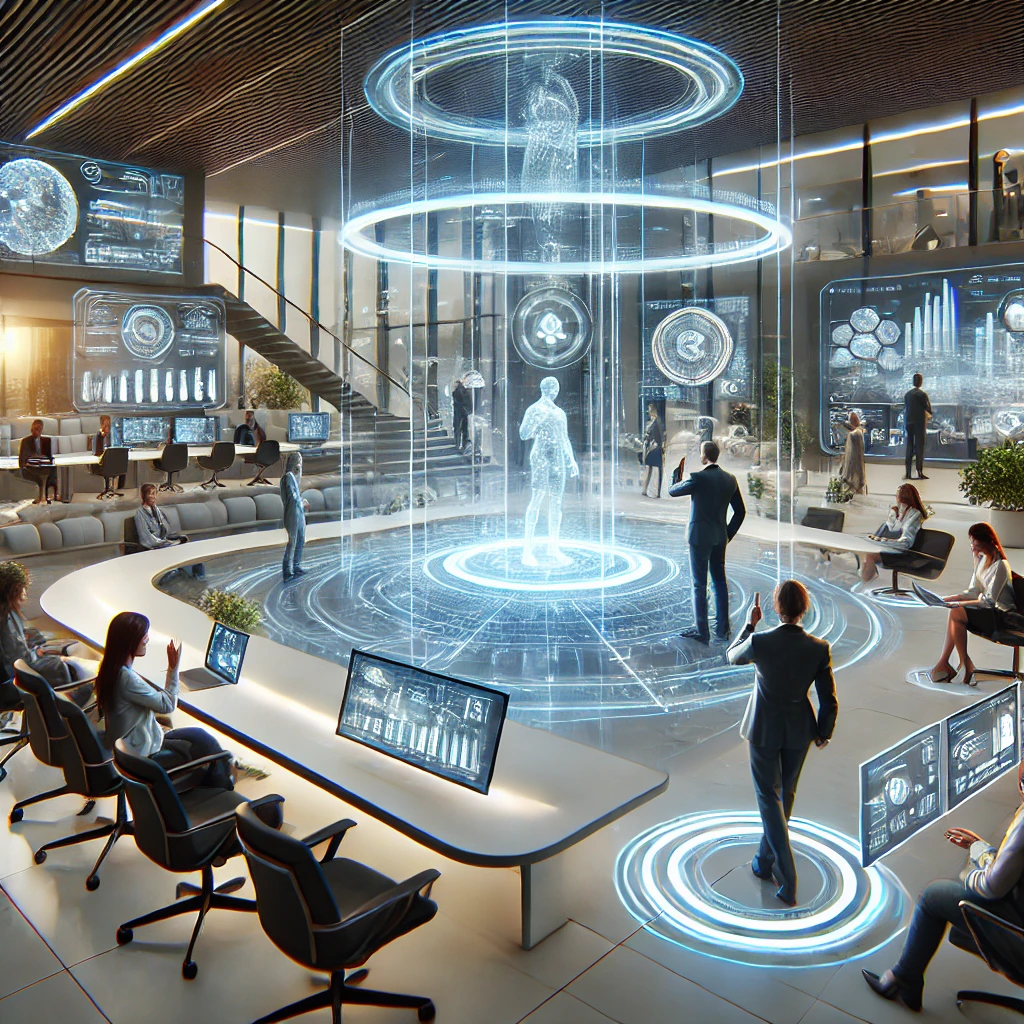 Imagine a virtual workspace where reality meets digital innovation. Users collaborate in immersive environments, interact through lifelike avatars, and work seamlessly with real-time tools. Meetings feel natural, with spatial audio and interactive el