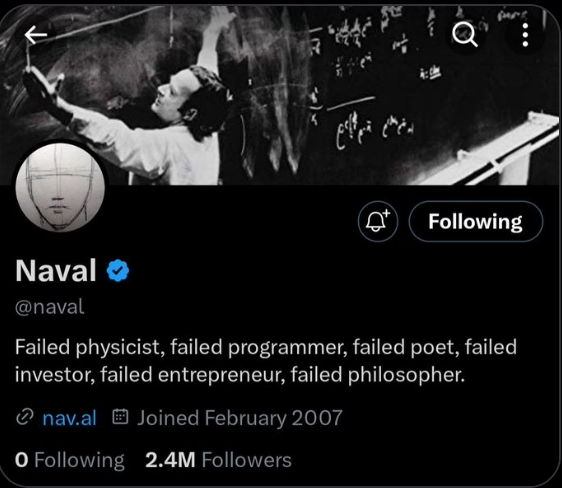 If Naval Ravikant has a bio like this then the rest of us normies are beyond cooked.