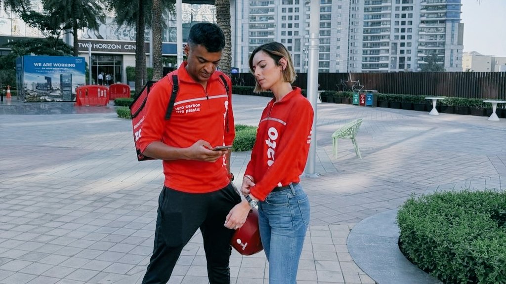🚨 Zomato CEO Deepinder Goyal and his wife Grecia Munoz step into the roles of delivery agents for a day.