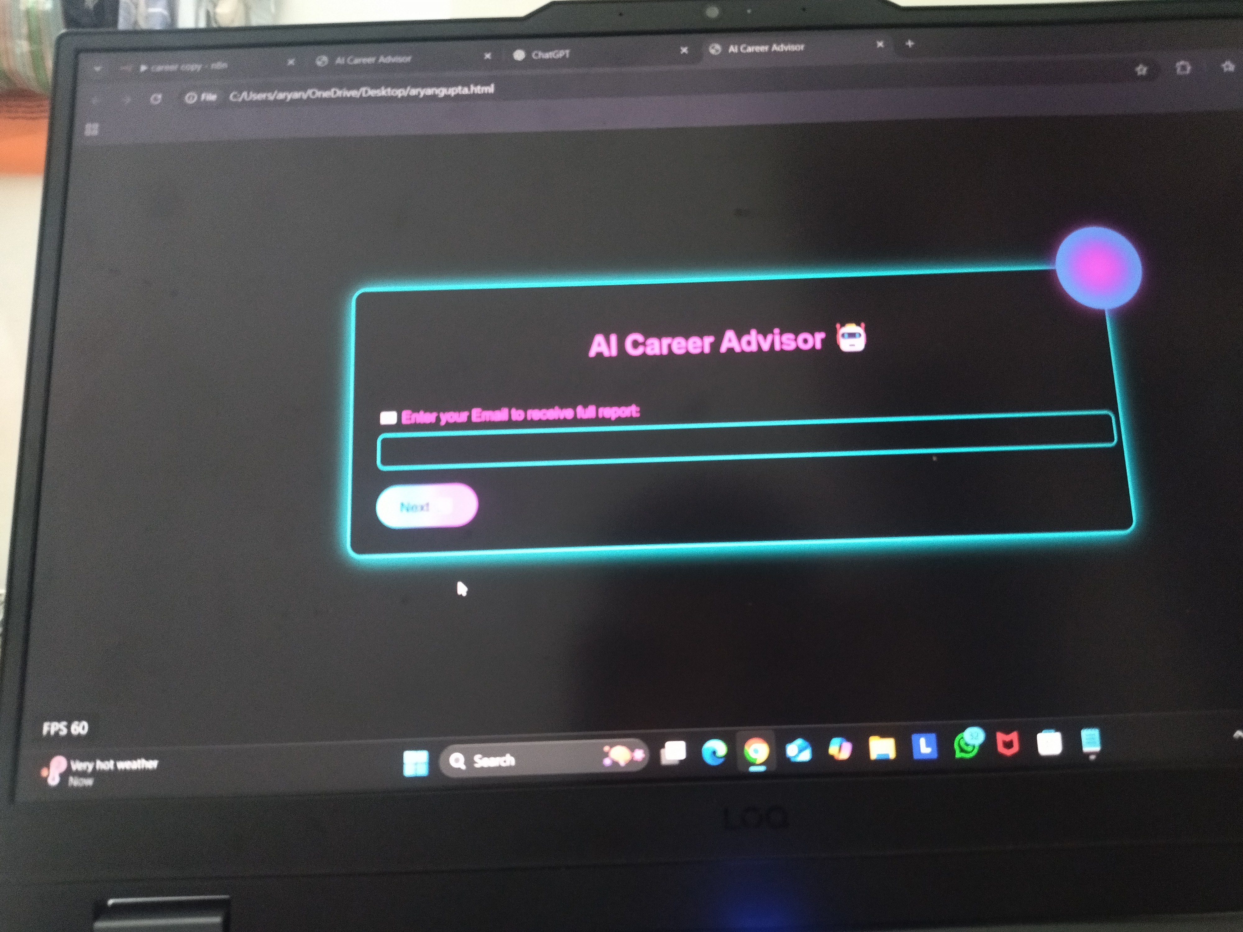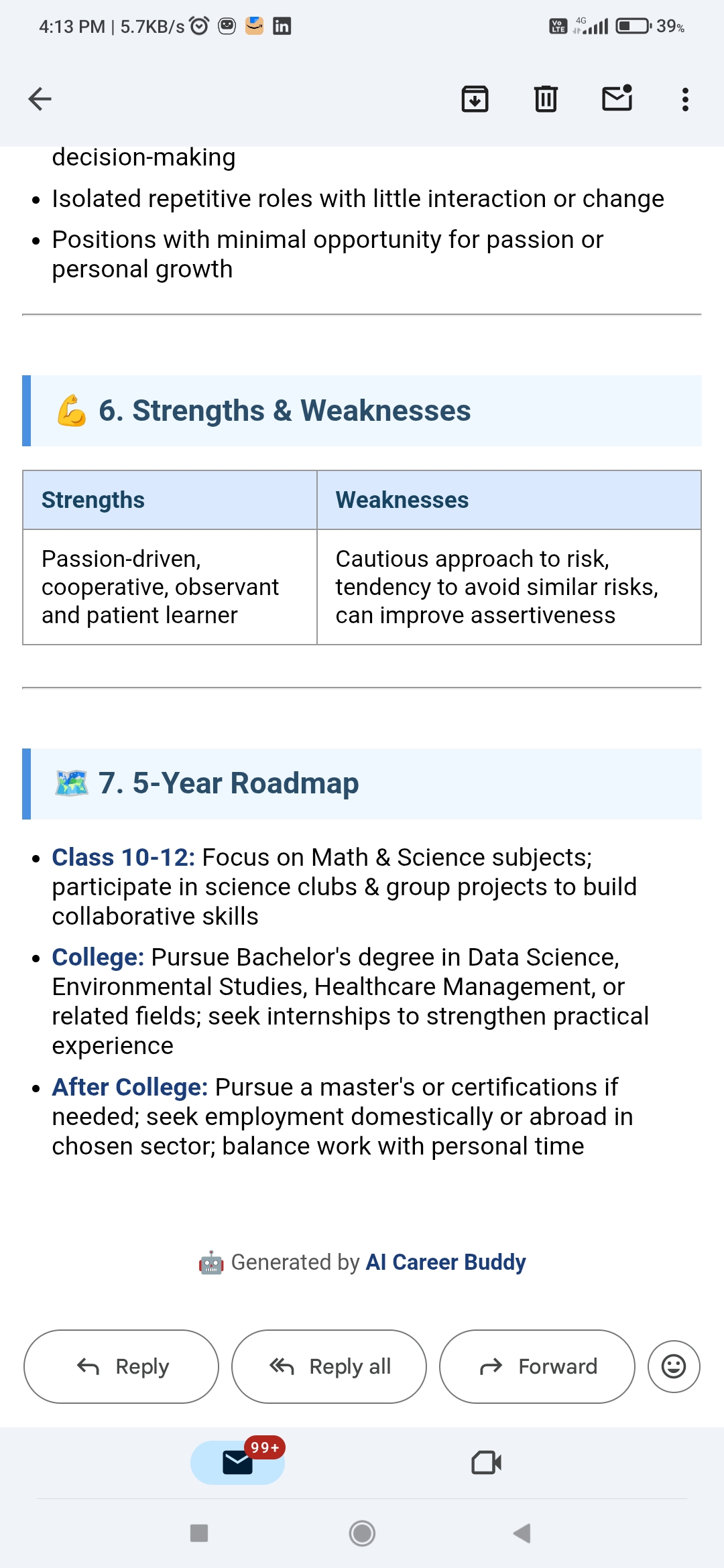 Concept: An AI-based tool that asks 20+ smart questions to students and instantly suggests the best career path, matching their interests, skills, and mindset. send detailed report quick by email. Already tested on 5000+ students with 99.95% accurac