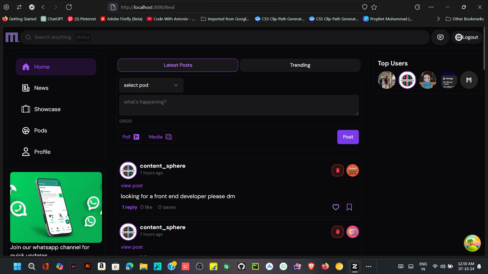 finally completed my medial-clone but there are bugs, i will fix them after finding out, anyway i learnt many many many things which building it (it took more than a month due to exams and assignment), btw its not a pwa app link: - https://medial-clone.vercel.app #medial #buildinpublic