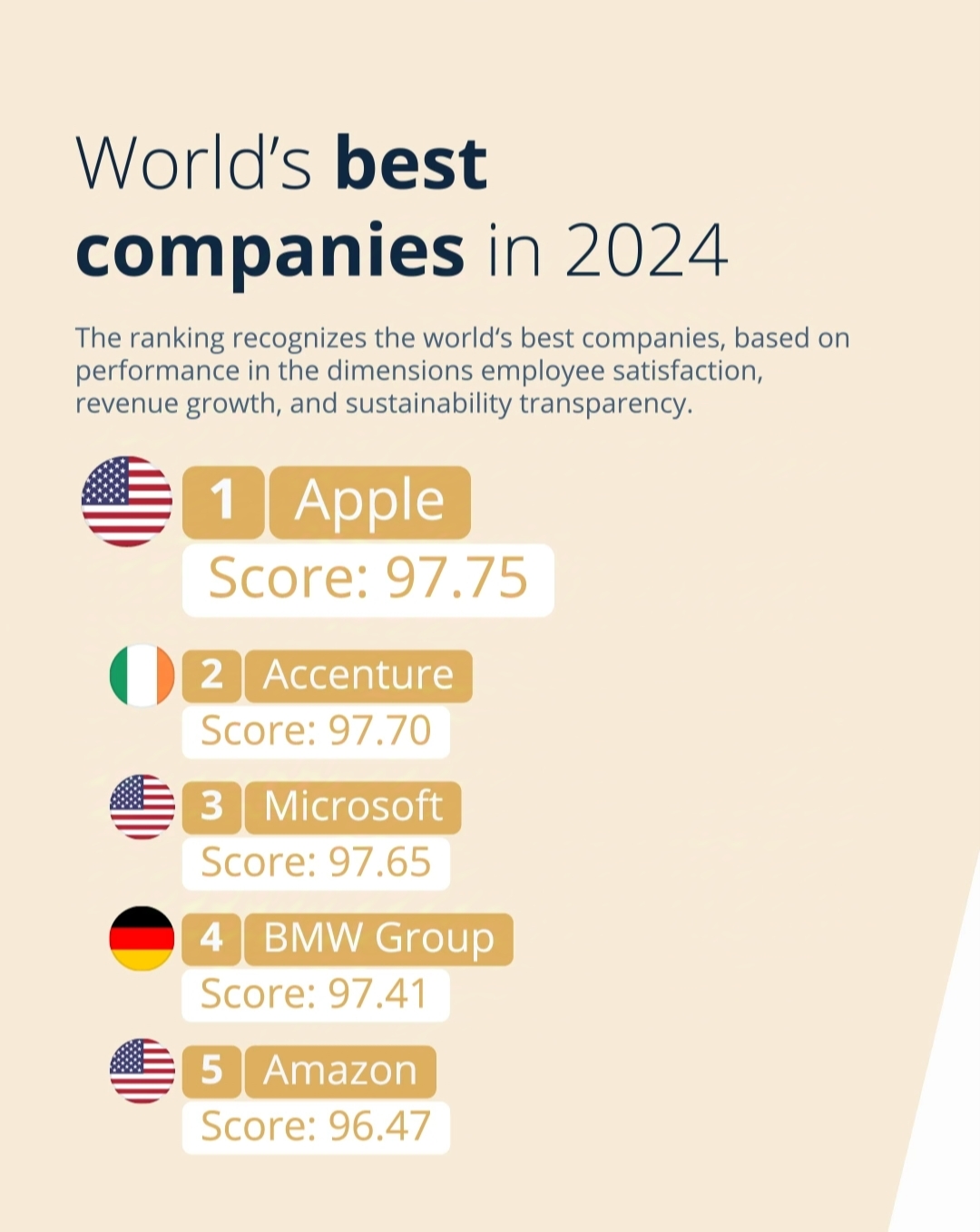 Top 5 World's Best Companies in 2024 based on employee satisfaction, revenue growth, and sustainability transparency 📛 Comment Your opinion 🔥