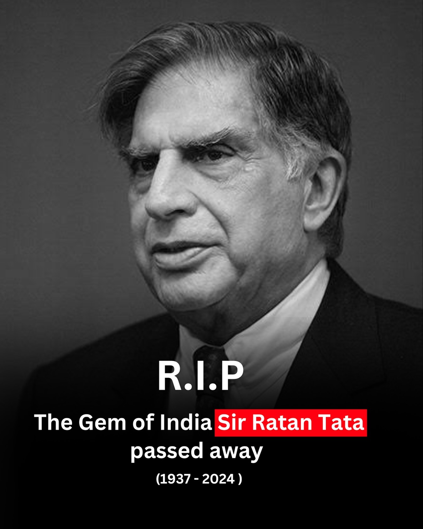 Remembering a Legend: Ratan Tata (1937-2024)💔 Today, we mourn the loss of a true gem—Shri Ratan Tata. His contributions to Indian industry and society are unmatched, and his legacy will continue to inspire generations.💯✨ Ratan Tata was more than