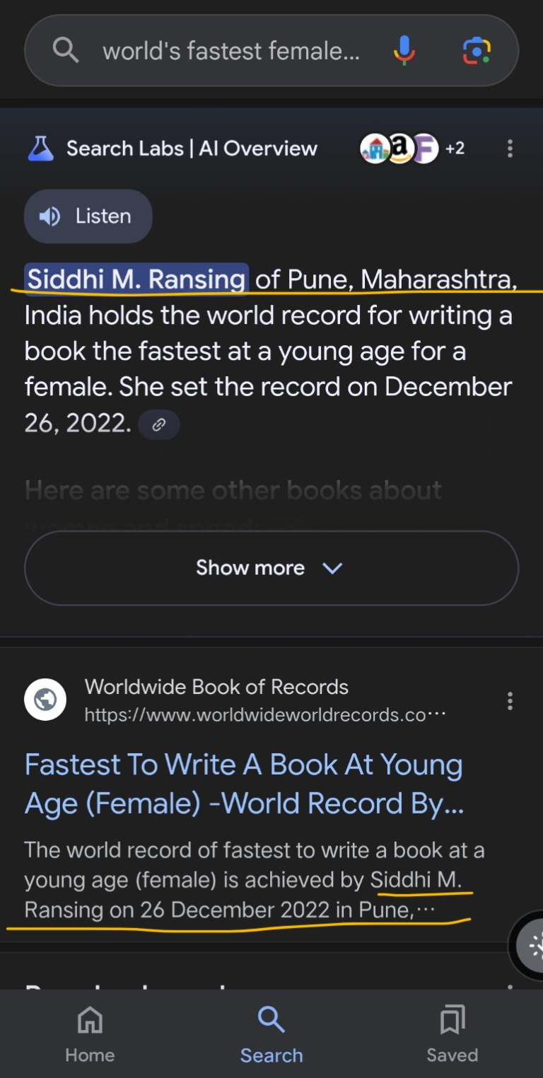 I didn't say that I'm the 1st female author, I mentioned that I am the World's Fastest Female Author. ... I think the given image is enough as proof.