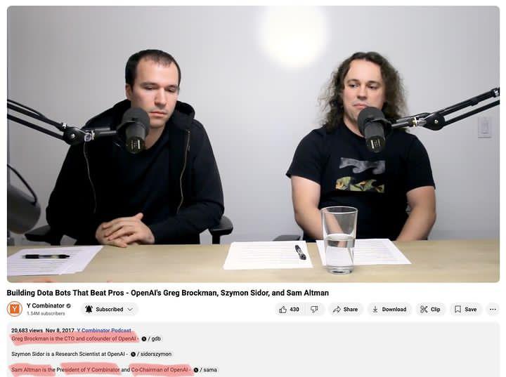 YouTube algorithm started recommending me videos from 6+ years ago with folks from OpenAI. Just realized that Sam Altman back then was President of Y Combinator and Co-Chairman of OpenAI.