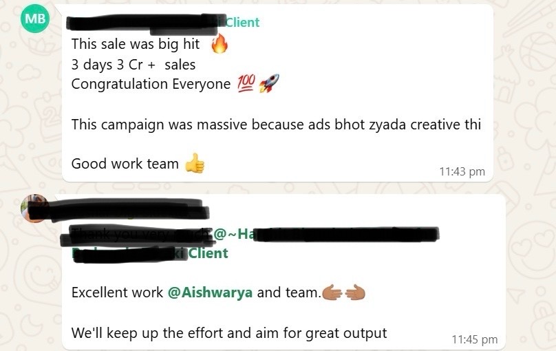 From Concept to 3 Cr+ in 3 Days When a brand comes back saying: "Ads bhot zyada creative thi." "Excellent work @Aishwarya and team." That's the real ROl. Not just reach. Not just impressions. But revenue and recognition. We pulled off a 3 Crore+