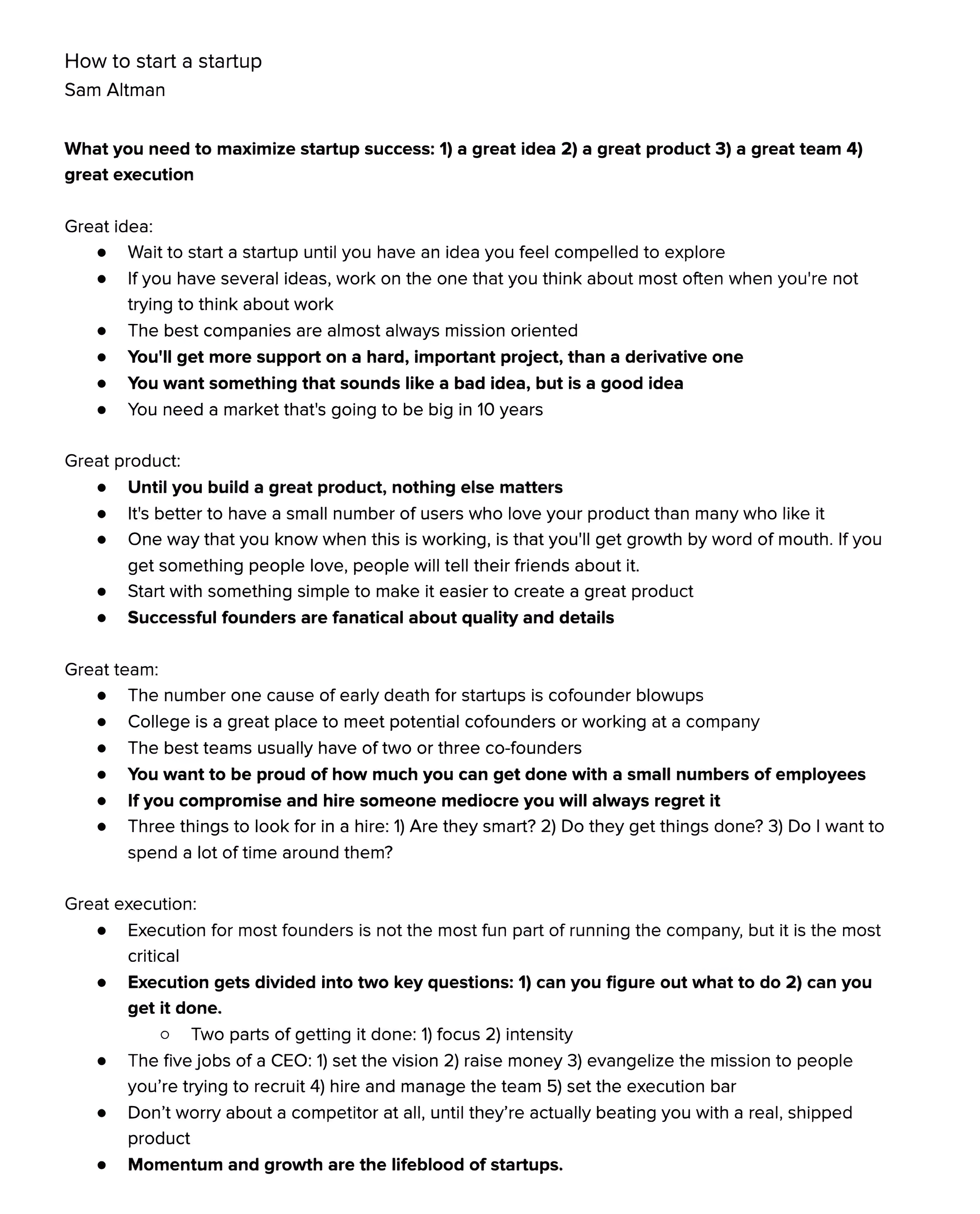 How to start a startup by Sam Altman 🚀🔥 (summary of Sam Altman Y combinator video) ❗❗BOOKMARK NOW ❗❗