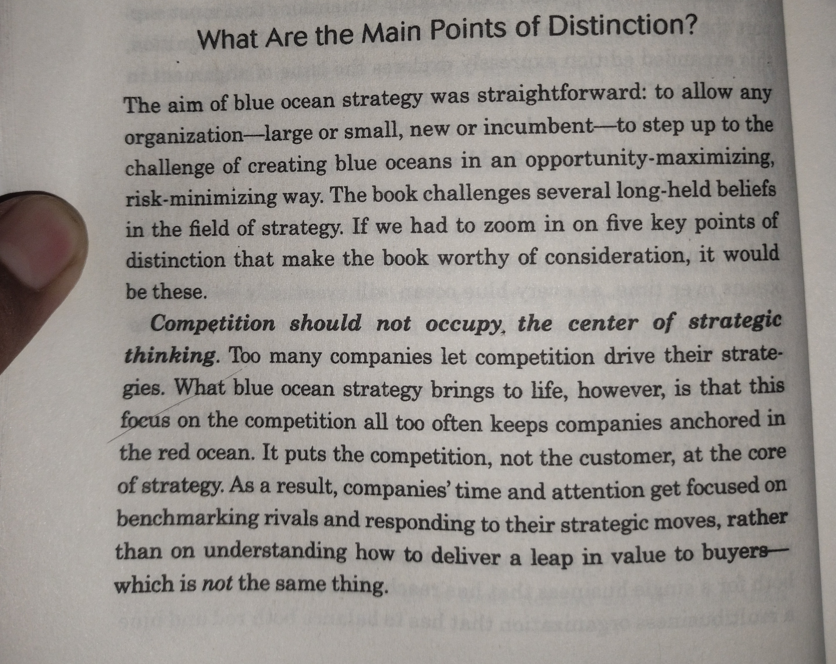 Competition should not accupy the centre of strategic thinking This line hits me... Are you a business owner or starting out I would recommend a Book "Blue Ocean Strategy". This book is for business working on bigger view... But it's full of p