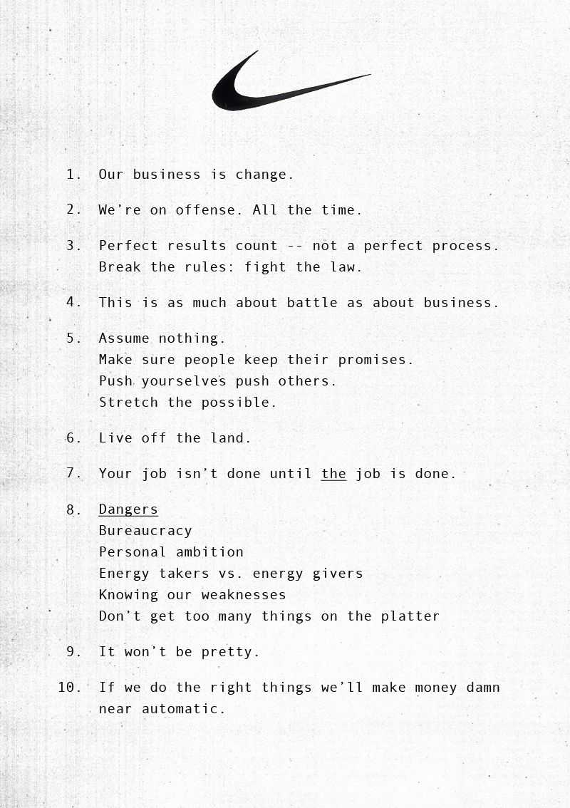 Internal Memo from 1977 titled "Principles" by Rob Strasser, Nike's first head of marketing