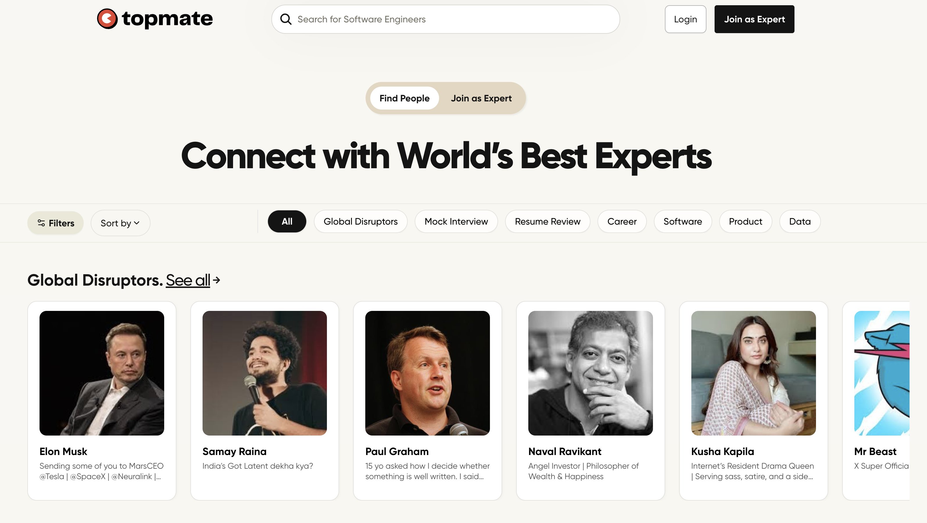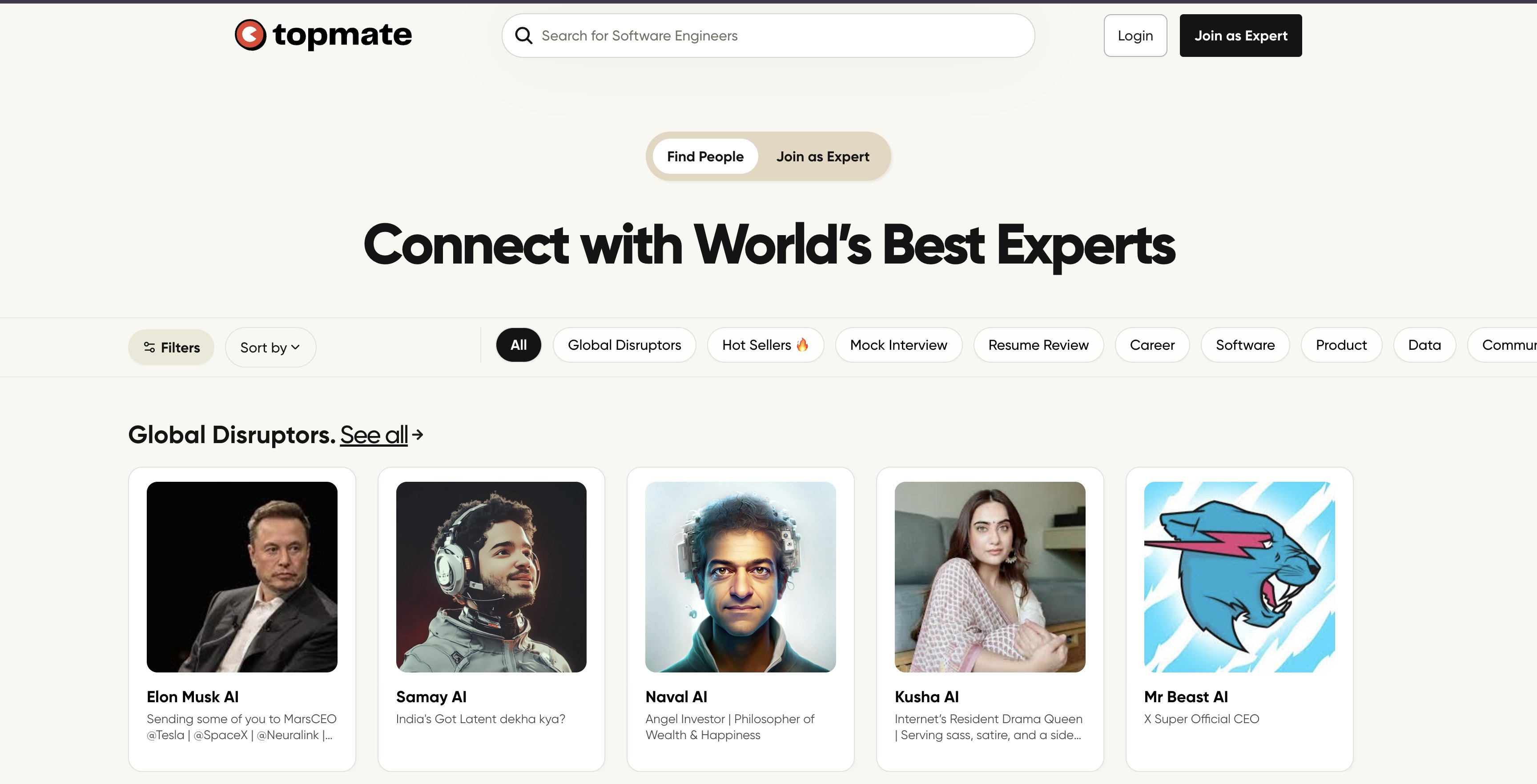 Topmate - The Scam. Singlehandedly ruined the image of Indian Startups last week. Here's what happened: They listed big people like Elon Musk, Paul Graham, Naval Ravikant, Mr beast on their website and promoted that as if its true. Here's the cra