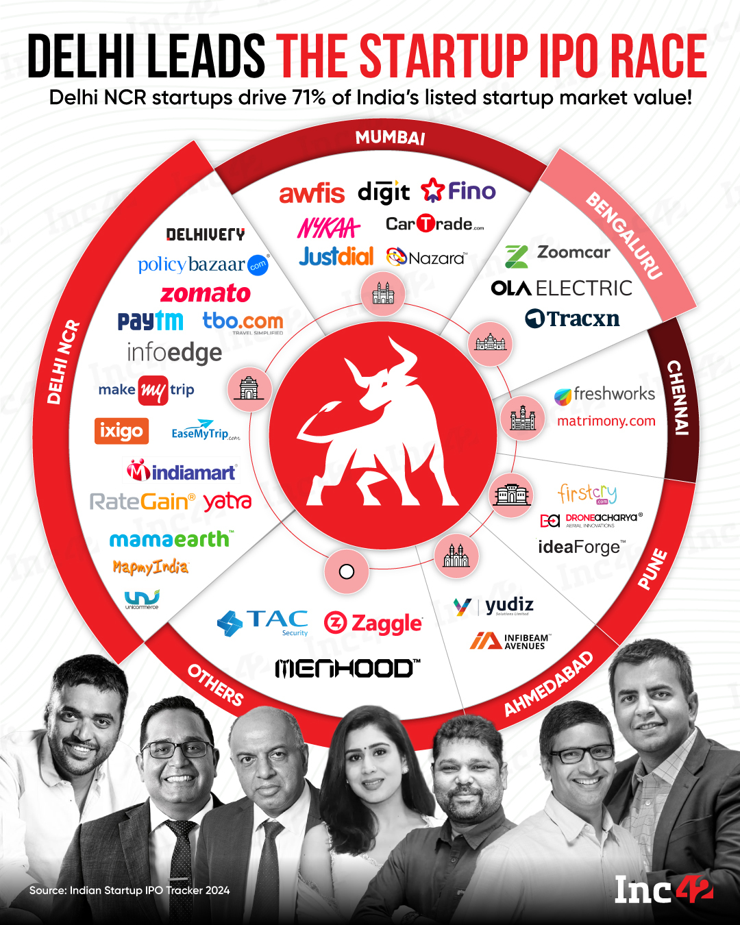 ๐ Delhi NCR Leads the Startup IPO Revolution! ๐ Did you know? Delhi NCR startups dominate Indiaโs listed startup market, driving a whopping 71% market value! Hereโs a breakdown of Indiaโs IPO stars: ๐ Delhi NCR: โ ๐ Zomato, ๐ Delhivery, ๐ฆ P