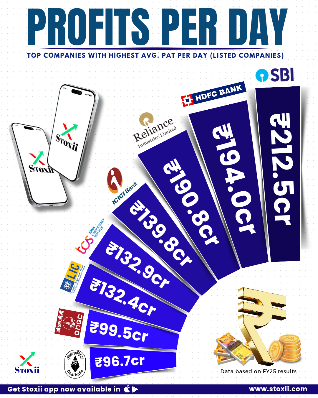 Did you know? 🤯 India’s biggest listed companies earn ₹100 Cr+ profits every single day! 🏦 SBI leads at ₹212.5 Cr/day 🏢 Reliance at ₹190.8 Cr/day 💻 TCS at ₹132.9 Cr/day This is the power of India’s corporate giants! 🇮🇳 #StockMarketIndia #Inve