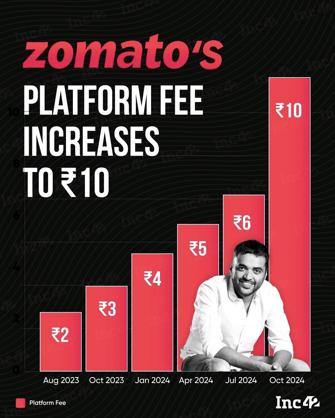 Zomato hikes platform fee for users; pauses these deliveries Zomato hikes platform fee for users; pauses these deliveries Zomato increased platform fee to Rs 5/order in major cities, aiming to enhance earnings. Swiggy charges Rs 5, with some users f