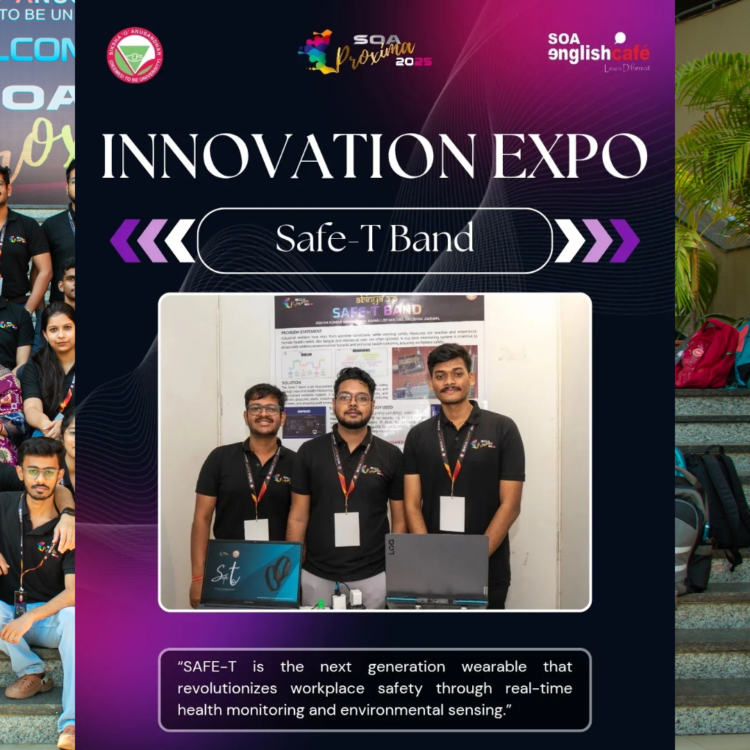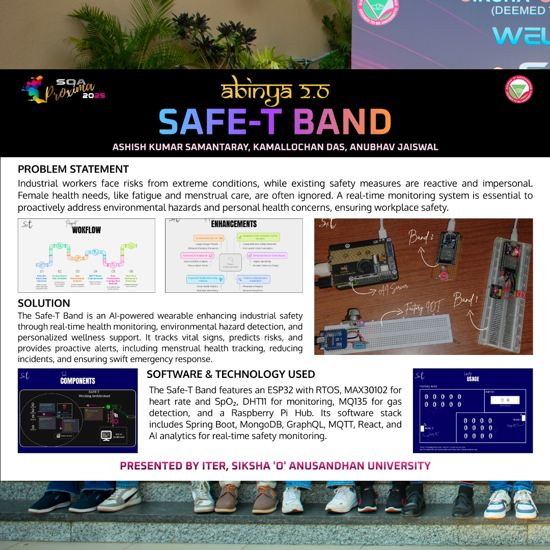 Pioneering Safety Solutions: Abinya 2.0 | S'O'A Proxima 2025 In a world where tech agility is essential, our SAFE-T Band redefines industrial safety. This AI-powered wearable transforms raw sensor data into real-time insights that help industries st