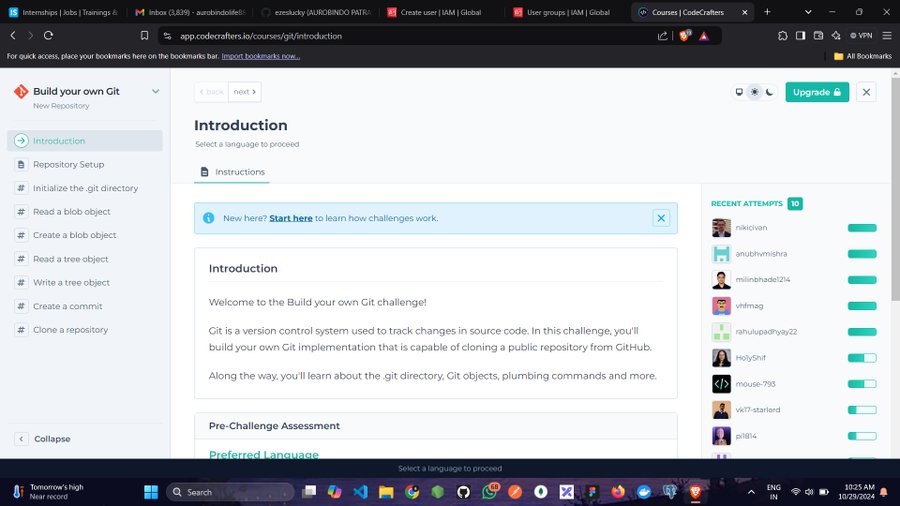 Build your own Git challenge! Git is a version control system used to track changes in source code. In this challenge, you'll build your own Git implementation that is capable of cloning a public repository from GitHub.