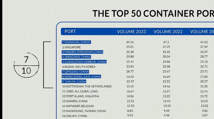 7 out of top 10 container ports are from China, while our top port stands at 35th position