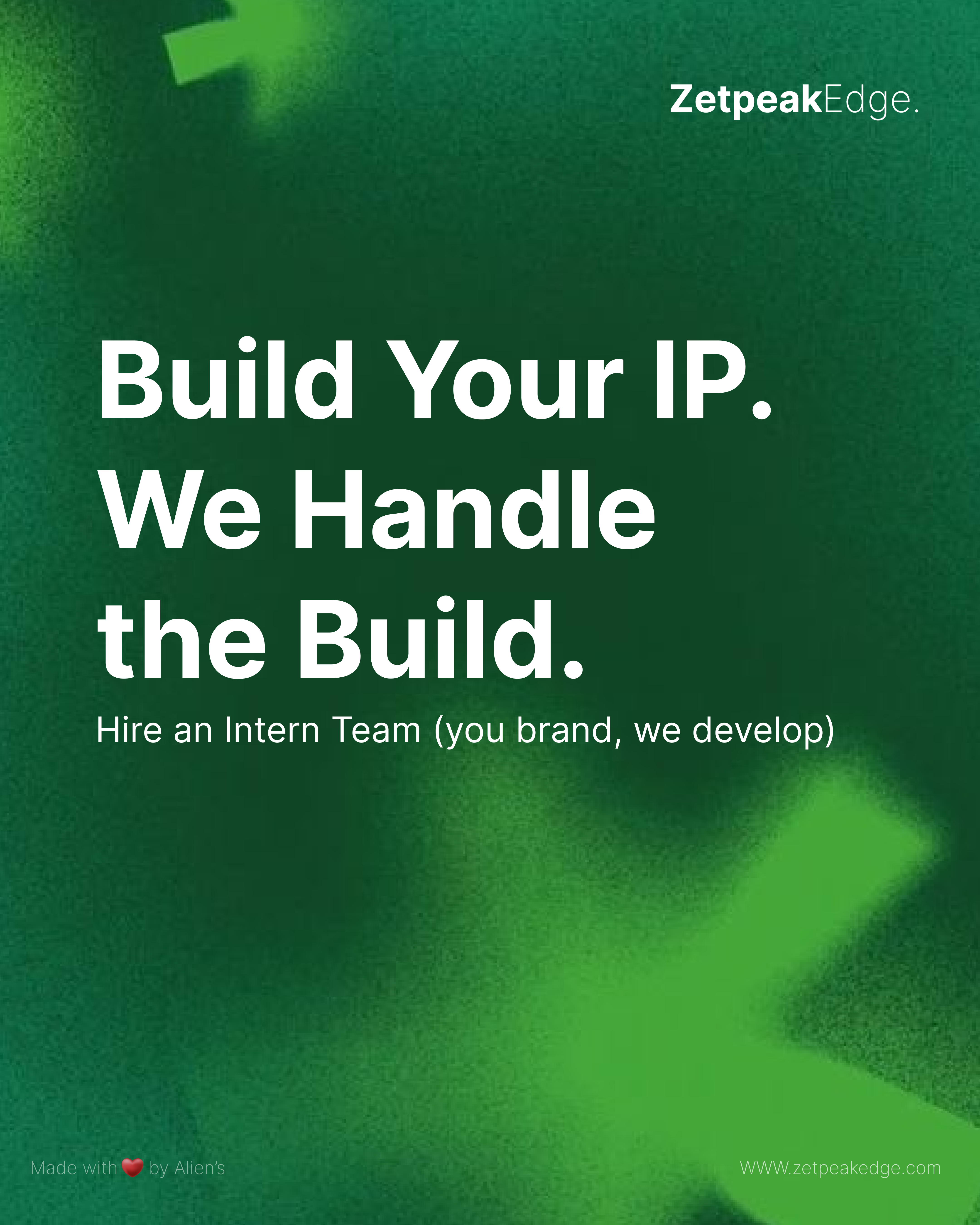 Build Your IP. We Handle the Build. Stop renting talent and start owning your assets. If you’re a founder or business leader, your time is your most valuable resource. Don't waste months recruiting, onboarding, and managing a junior internal team.