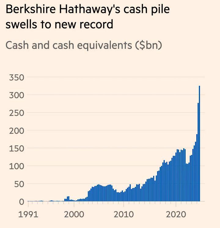 Warren Buffett just found the biggest piggy bank in the world! Berkshire Hathaway's cash pile is now a staggering $325.2 billion. He's practically swimming in money! 💰🏊♂️ Imagine the interest he's racking up! 🤑