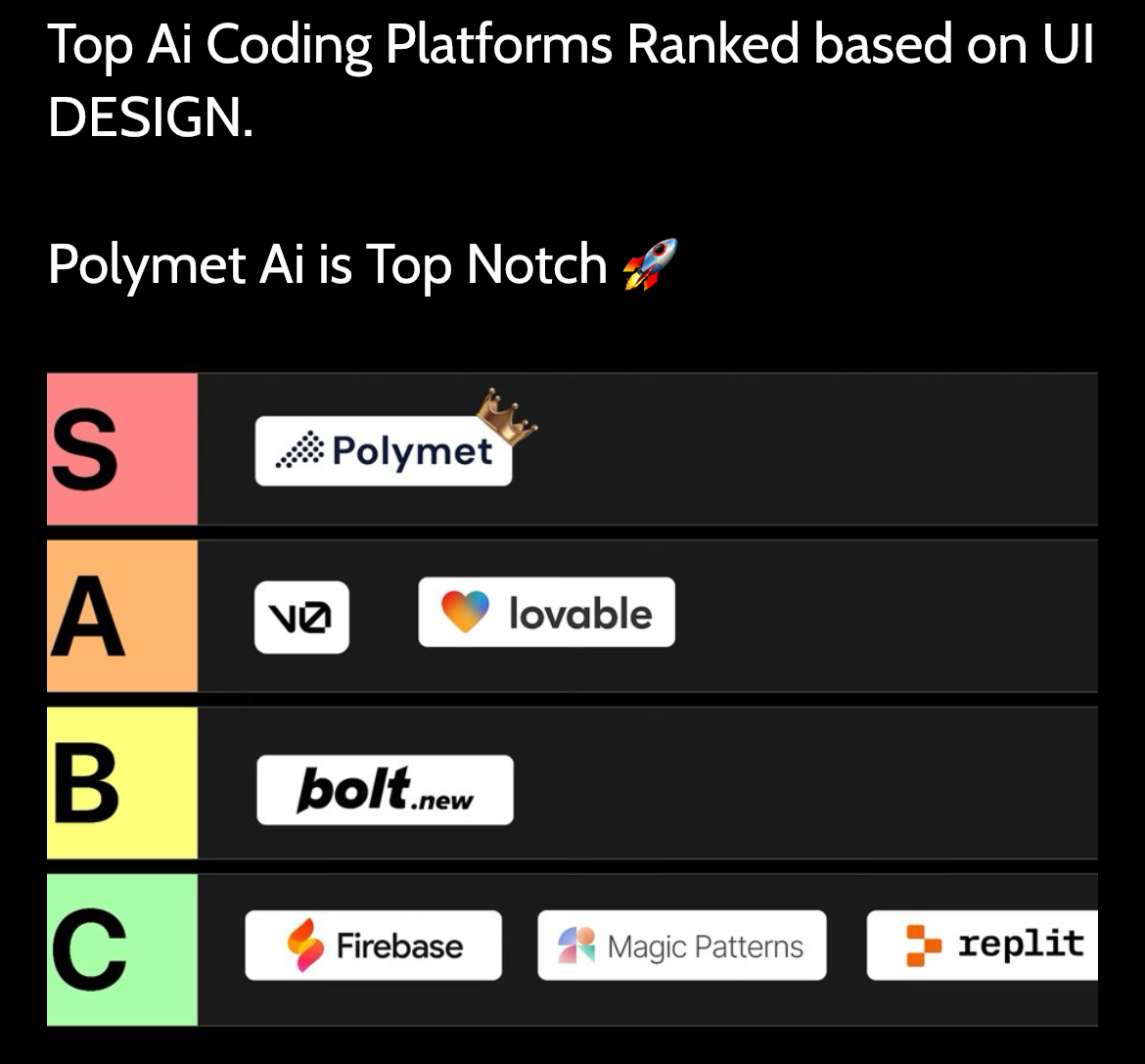 ✨ UI matters. A lot more than we think. Just went through a bunch of AI coding platforms recently, and one thing stood out: clean, intuitive design makes a HUGE difference in how you work and how fast you build. So I did a little UI-tier ranking bas