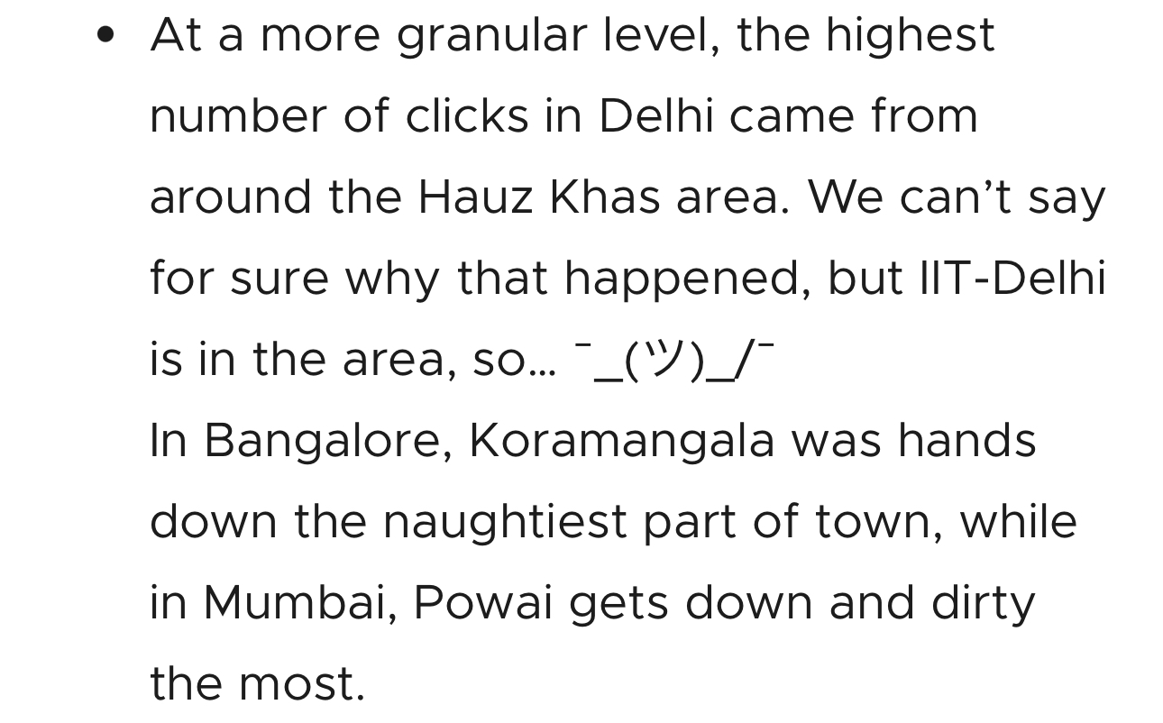 Zomato used to advertise on pornhub because it was very cheap to get users from there compared to Facebook. Delhi and Bangalore is where it worked the best. Hauz Khas and Koramangala specifically. โTurns out advertising on a porn site is a great id
