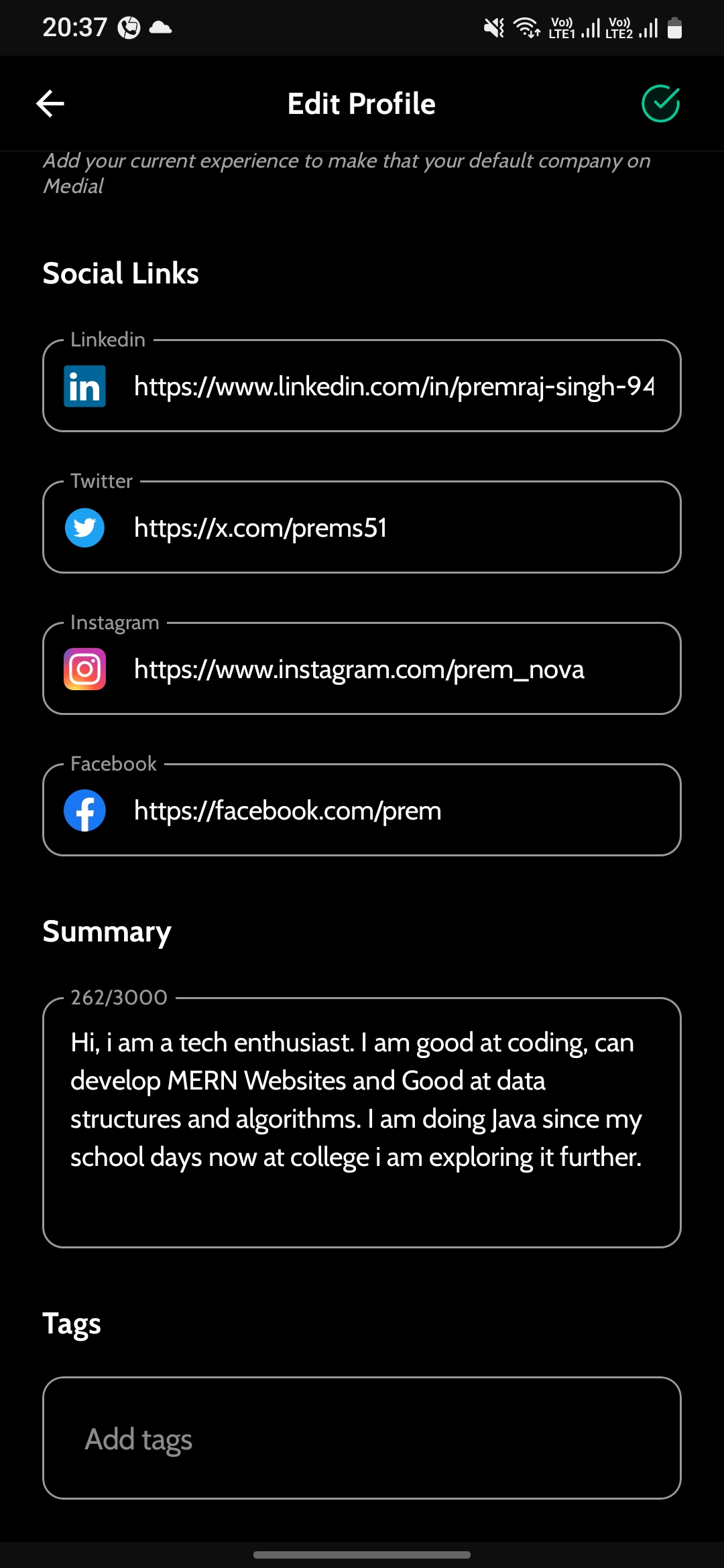 How do i add tags in the medial Profile? i tried comma separated values, double quotes, single quotes, #, @ but nothing works!!