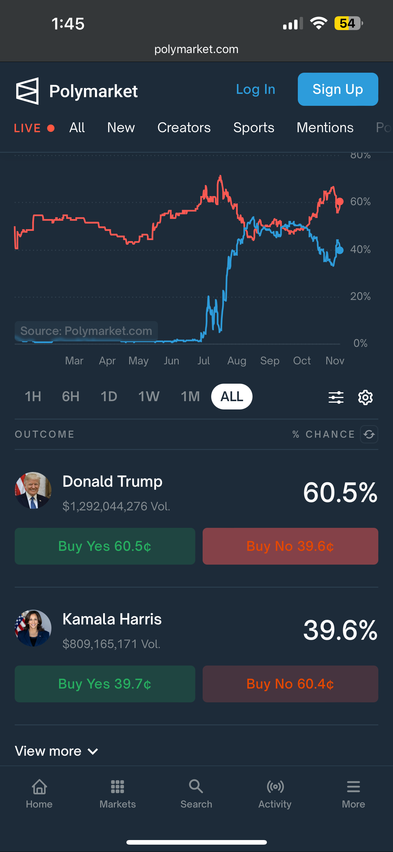 Polymarket shows the trends improving for Trump and worsening for Kamala. Excited to see how this plays out.