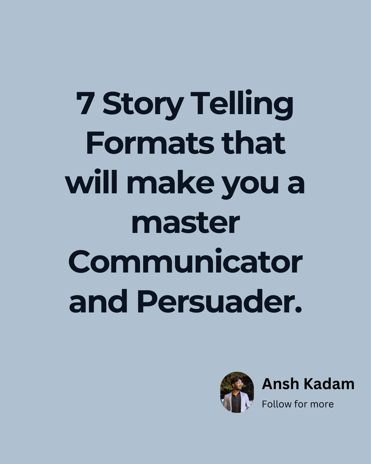 7 storytelling formats that will make you a master Communicator and Persuader. 1 - The Classic 3-Act Structure โข Setup โข Conflict โข Resolution 2 - Before, After, Bridge โข Before = Struggles โข After = Success โข Bridge = Transformation 3 - Ranking F