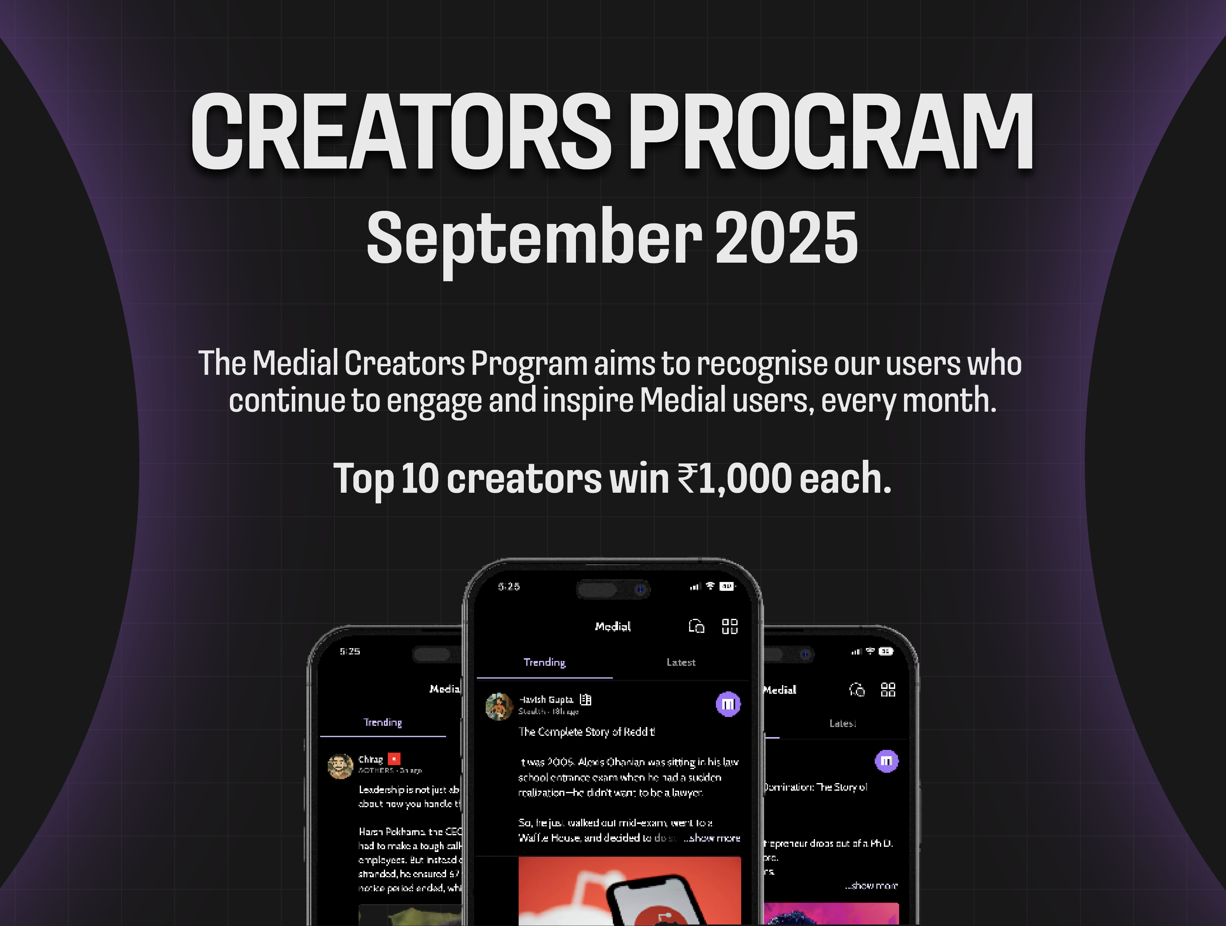 Creators Program - Sep 2025 is live! At Medial, creators do more than just share content-they educate, engage, and inspire. Unlike short video platforms, Medial is built for knowledge-sharing and meaningful discussions, and we're proud to foster thi