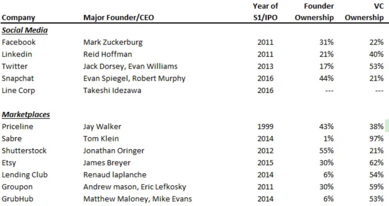 Below attached is, Famous Founders and their Ownership during their respective IPOs v/s VC Ownerships: Investors have standards in mind when it comes to what your cap table should look like. The founders should collectively own more than 50% of the