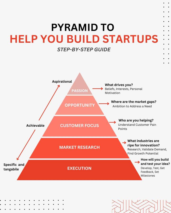 Entrepreneurs often have great ideas but struggle with putting them into practice. The pyramid helps entrepreneurs avoid common mistakes like jumping into an idea without a clear understanding of its demand or feasibility. I hope you find this hel