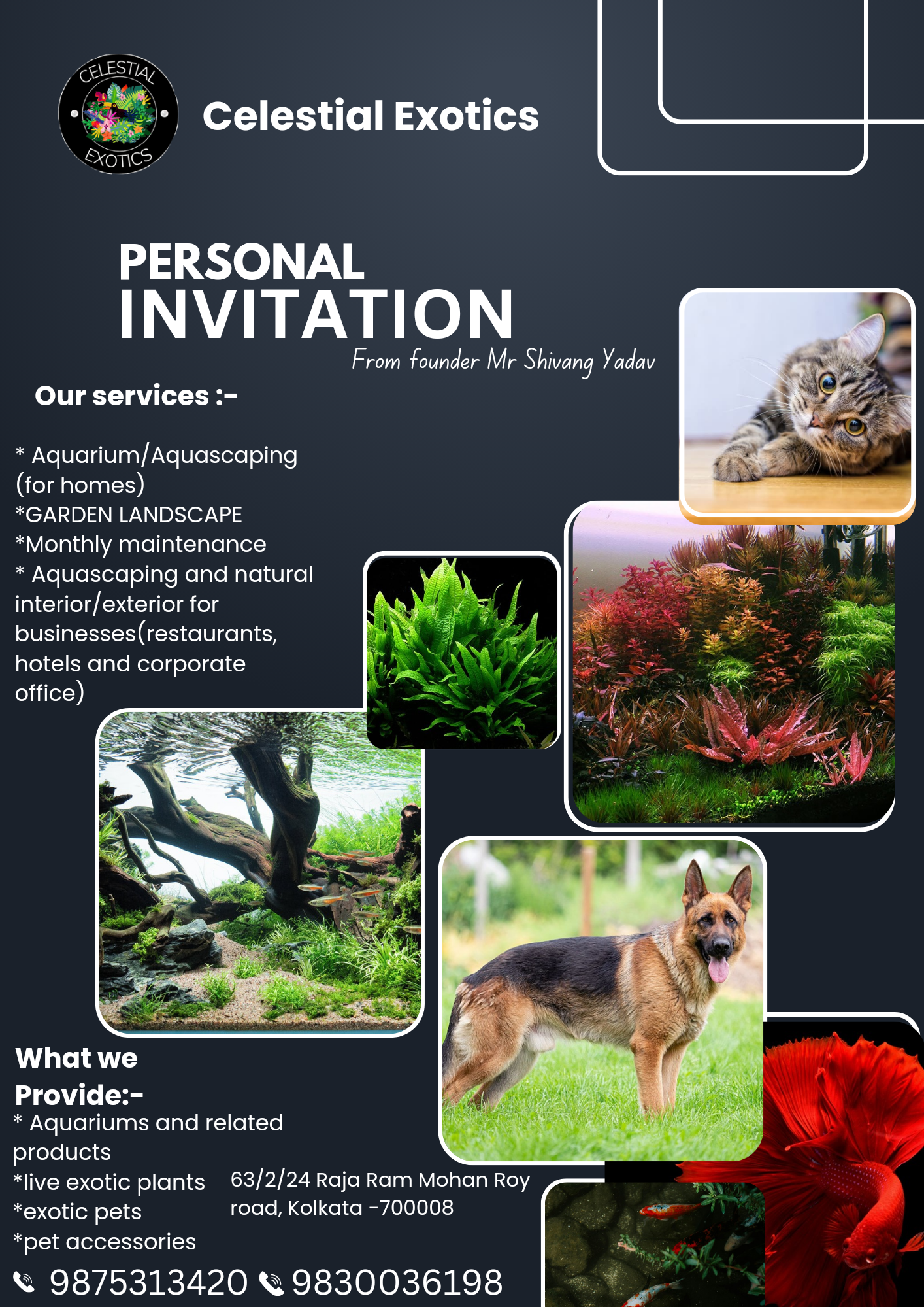 Hello everyone, my name is Shivang Yadav and I am a 18 year old entrepreneur. my buisness is all about natural flora and fauna as the name suggests we are an exotic plants and animals dealer. we do Aquascaping to landscaping and everything in betwee
